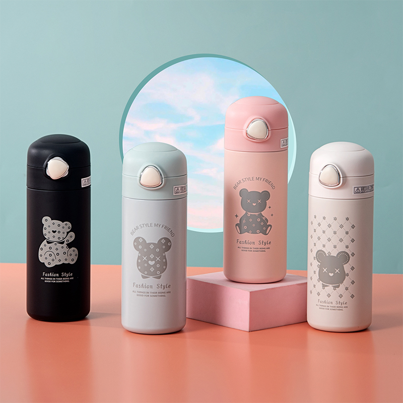 350ML欧雅线描小熊保温杯304不锈钢弹跳盖吸管杯