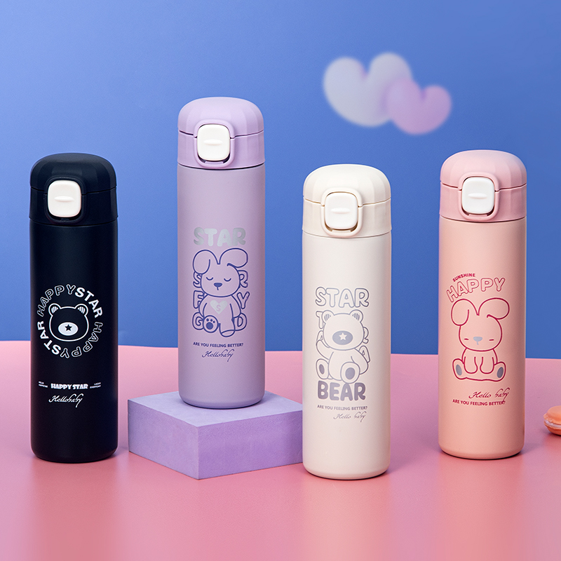 450ML商务弹跳保温杯卡通可爱动物少女心创意水杯子