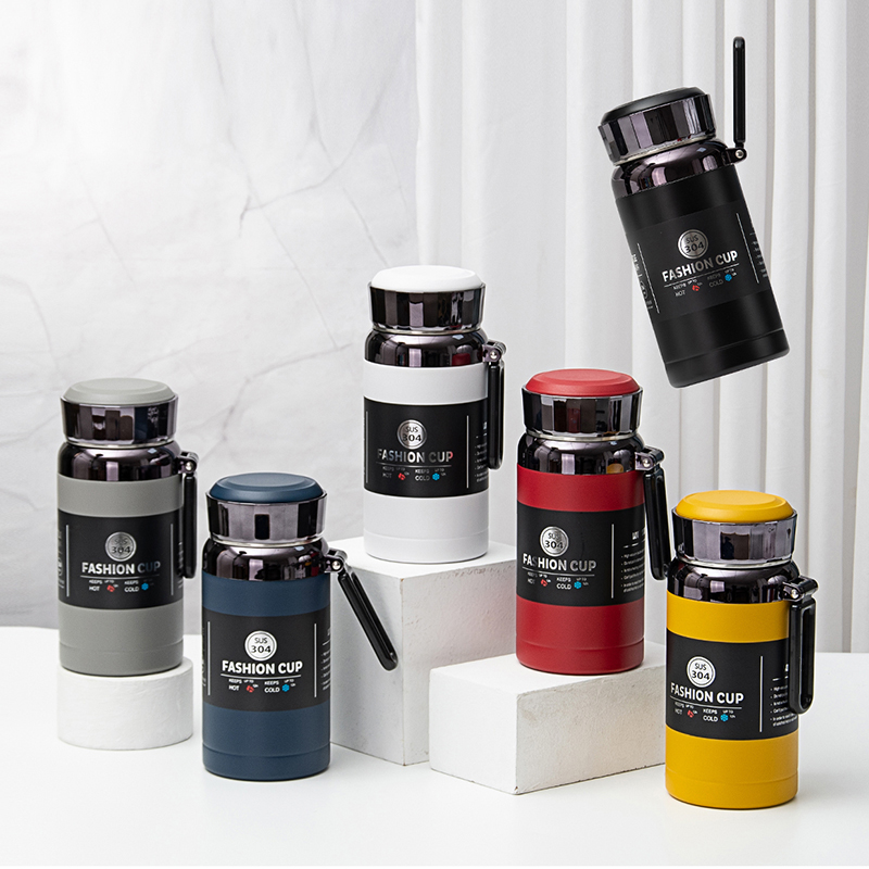 500ML简约豹纹弹盖保温杯304不锈钢商务直身水杯子