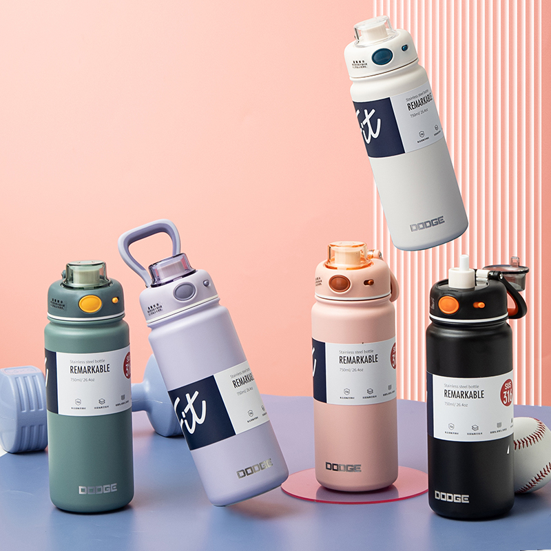 500ML简约豹纹弹盖保温杯304不锈钢商务直身水杯子