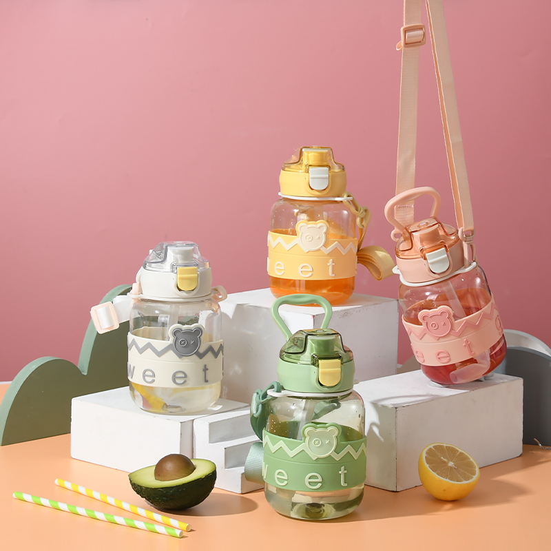 600ML卡通鹿角可爱儿童塑料杯便携背带弹盖吸管水杯