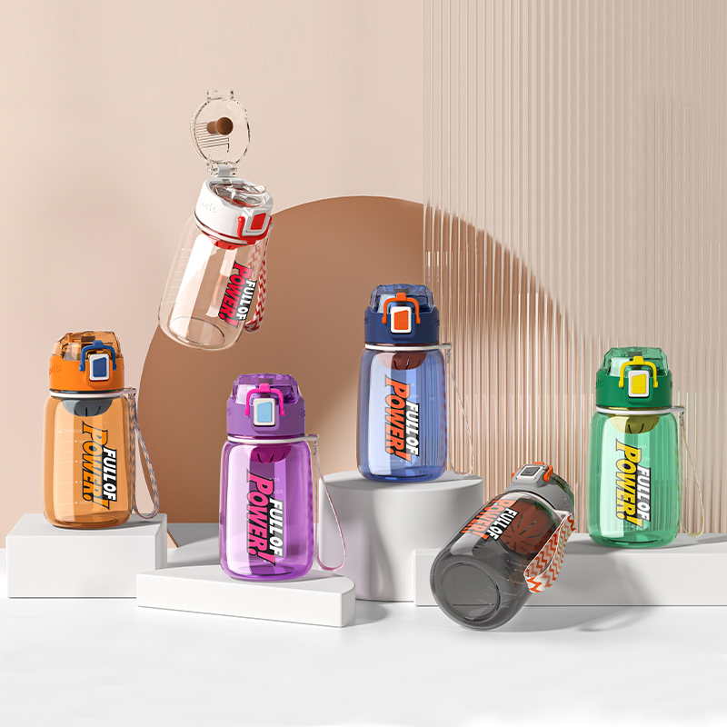 550ML亿本蘑菇点点云端儿童吸管水壶背带塑料杯