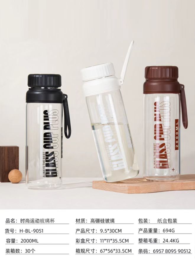 2000ML亿本纯享双饮太空塑料杯渐变色便携水杯(TPE袋)