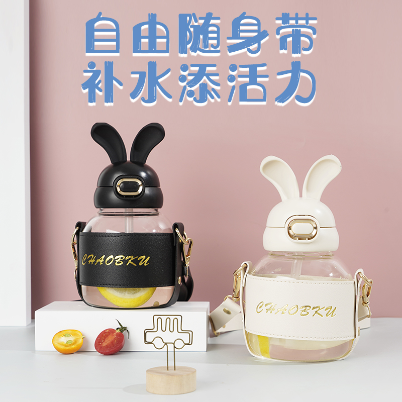 480ML随手玻璃杯学生单层透明简约清新便携弹跳盖水杯