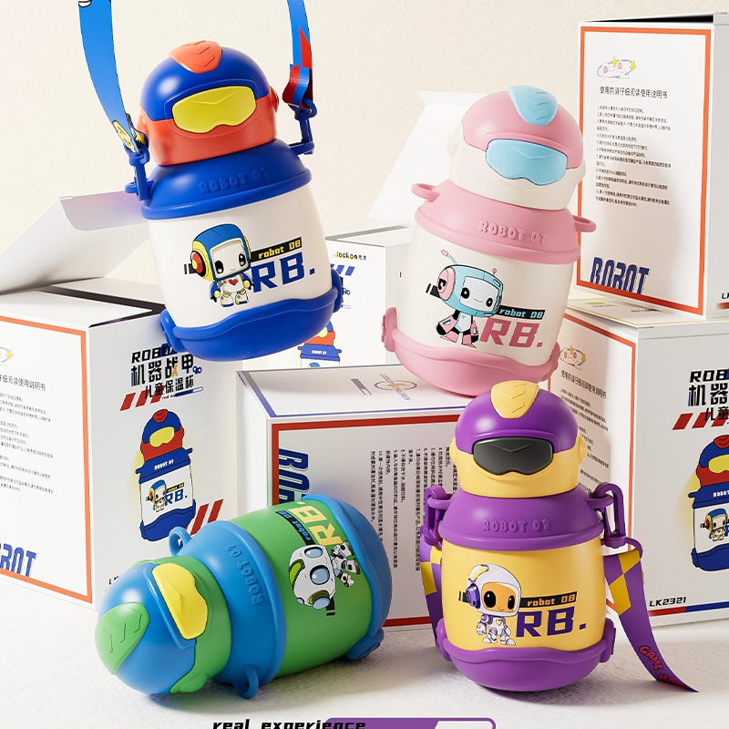 600ML卡通316不锈钢趣味儿童保温杯一杯两盖吸管杯