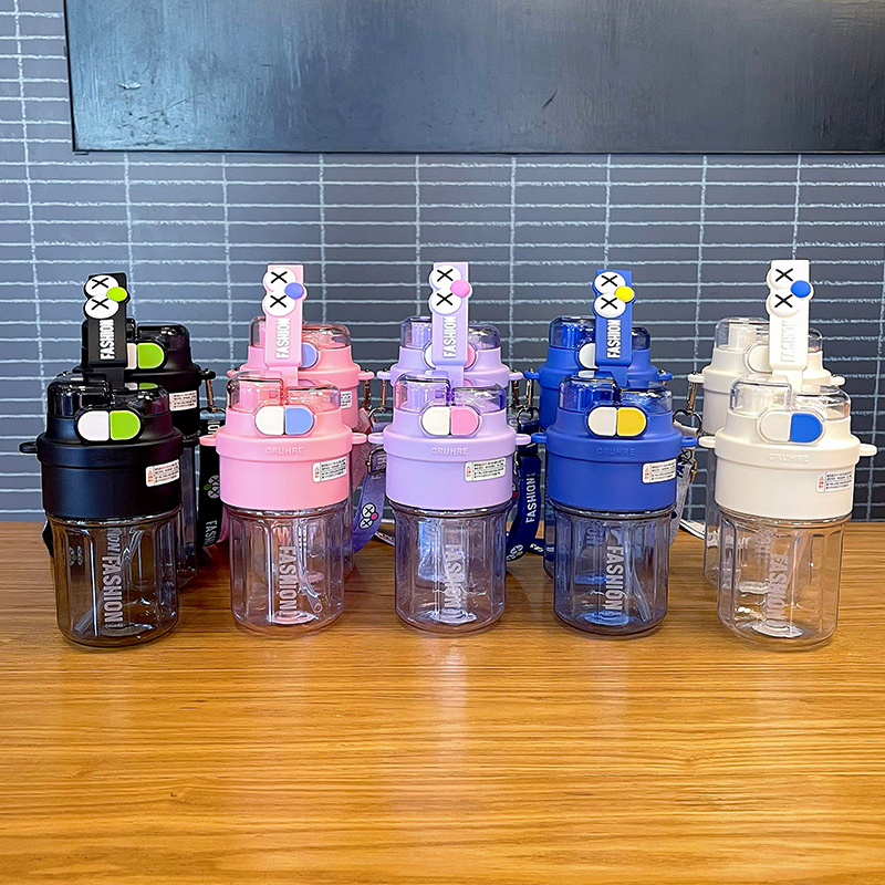 420ML亿本雨乐儿童水壶吸管塑料杯便携背带水杯子