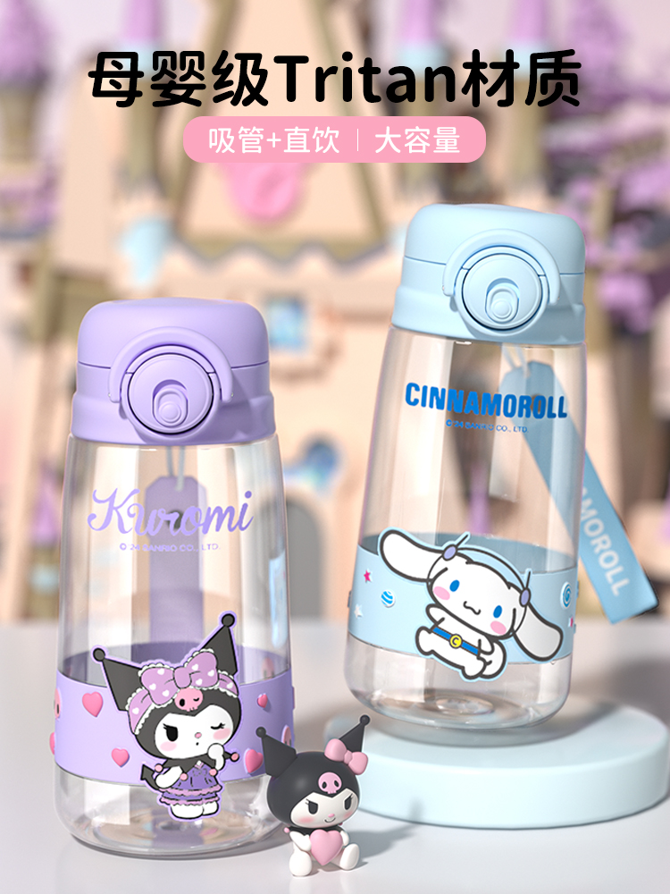 550ML卡通儿童背带吸管塑料杯弹跳盖宝宝学饮杯子
