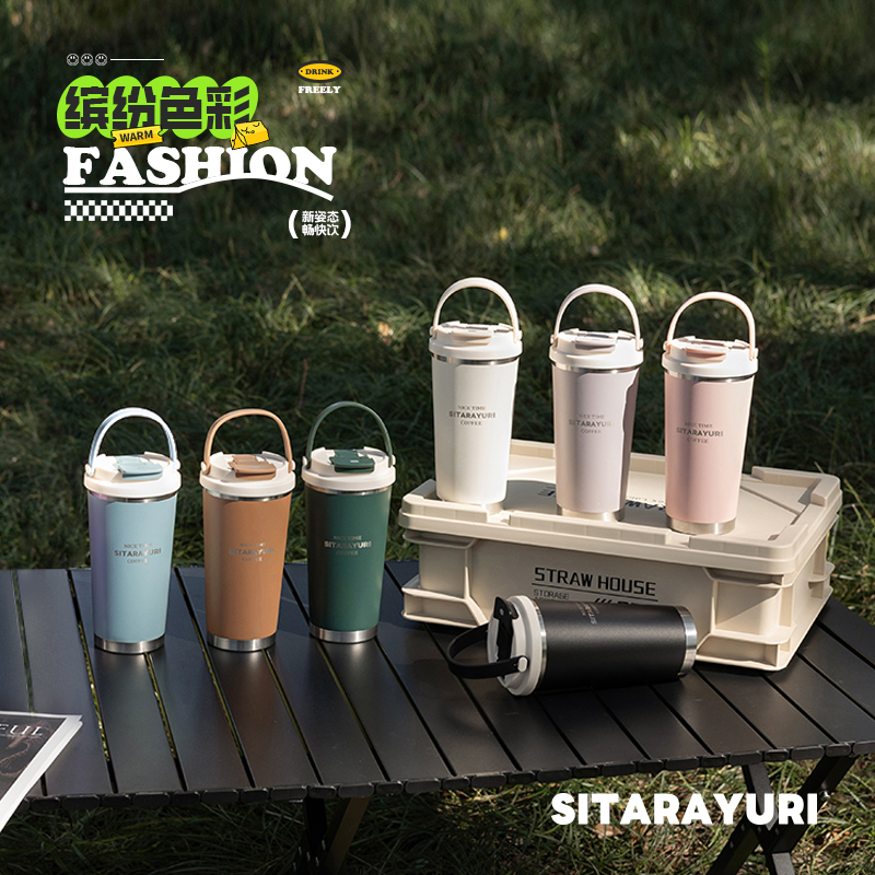 560ML时尚双饮手提保温咖啡杯